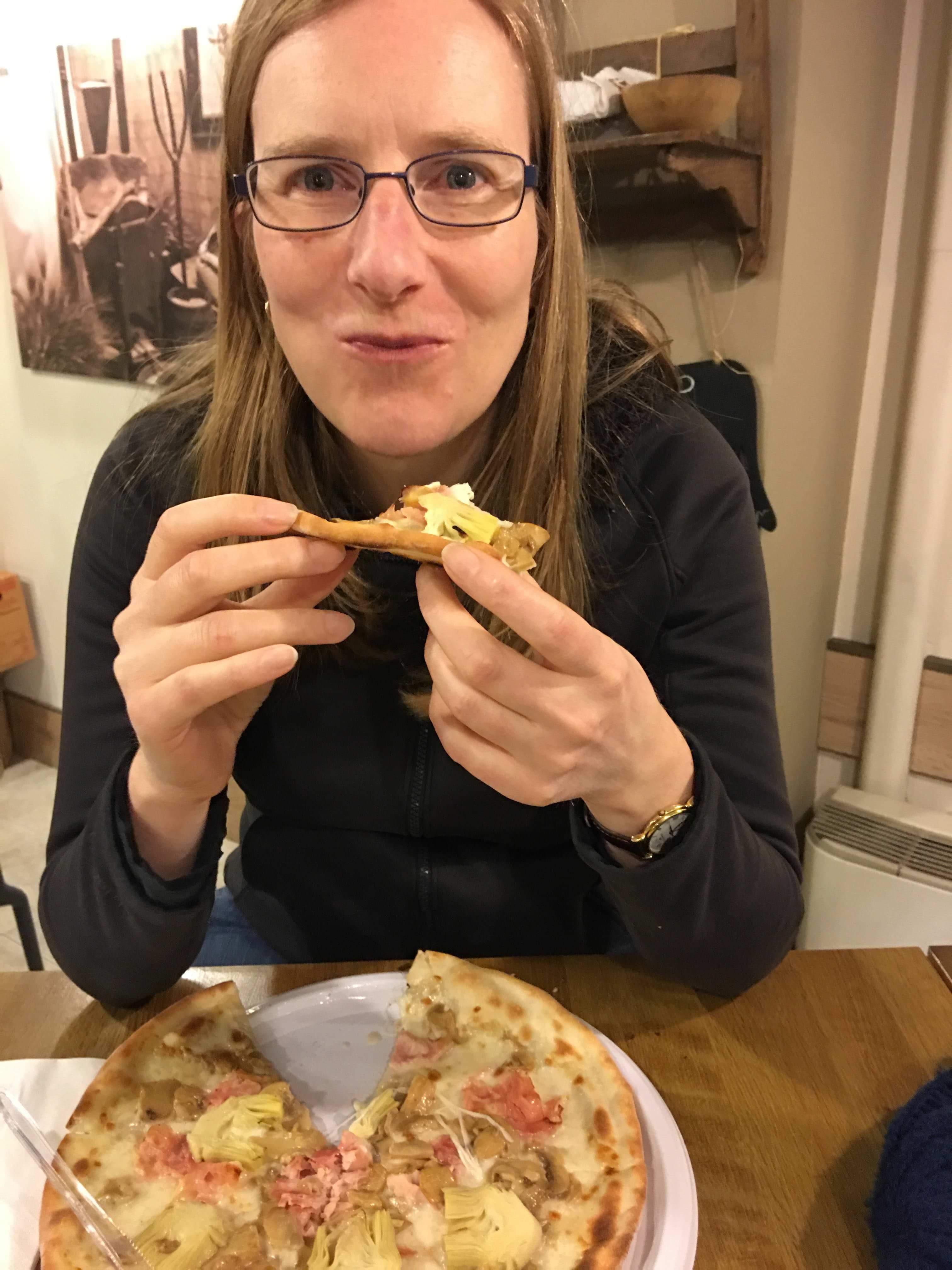 We pootled along the motorway from Milan to Bergamo, and then on to the little town just outside Bergamo where we would stay. We settled in to our room and went for an exploratory walk. We found a pizza place that catered to Ingrid's allergy to both gluten and to tomatoes. Pizza bianca! (Literally, white pizza!) Just as well, because there was no way that I wasn't going to eat pizza in Italy!