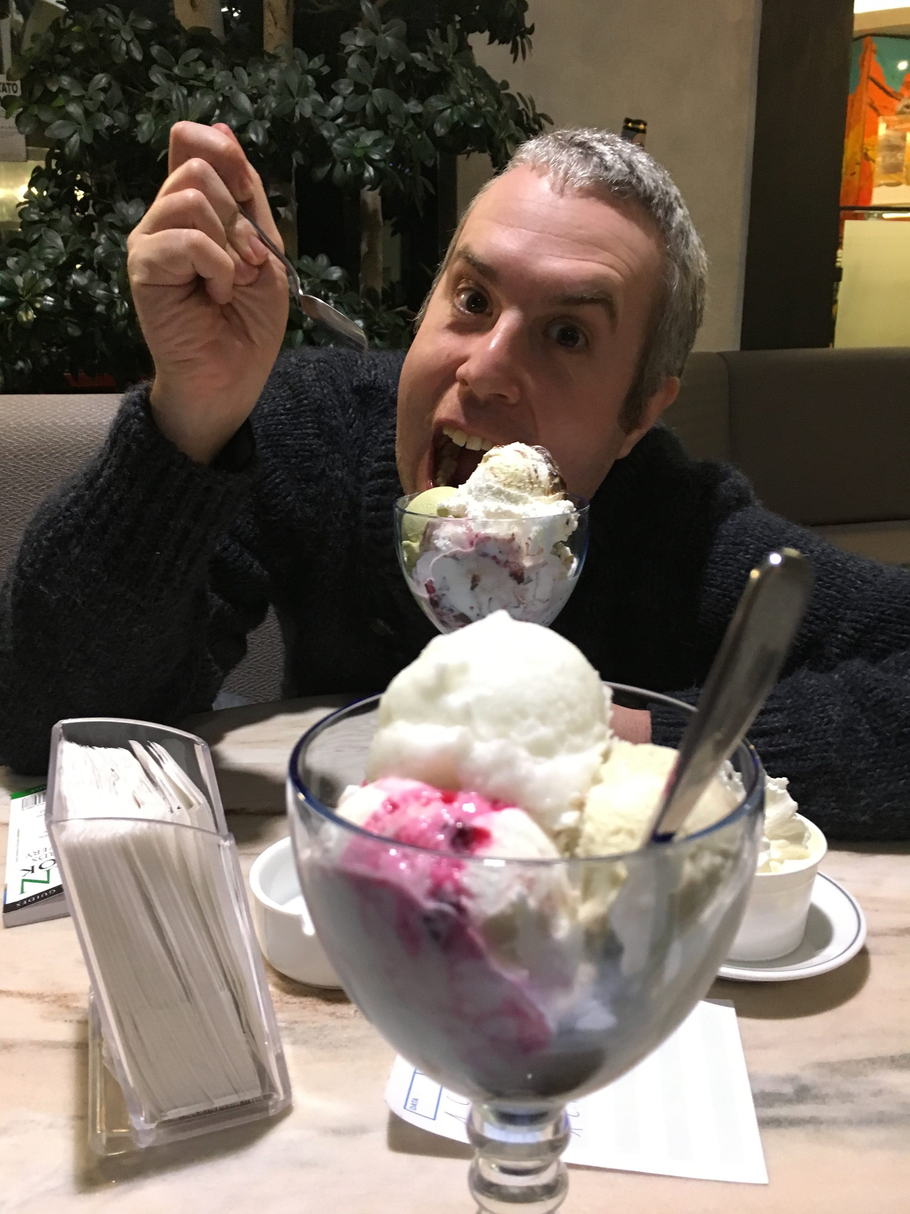 On the way home we stopped off at the Gelato shop. There were almost too many options but we managed!