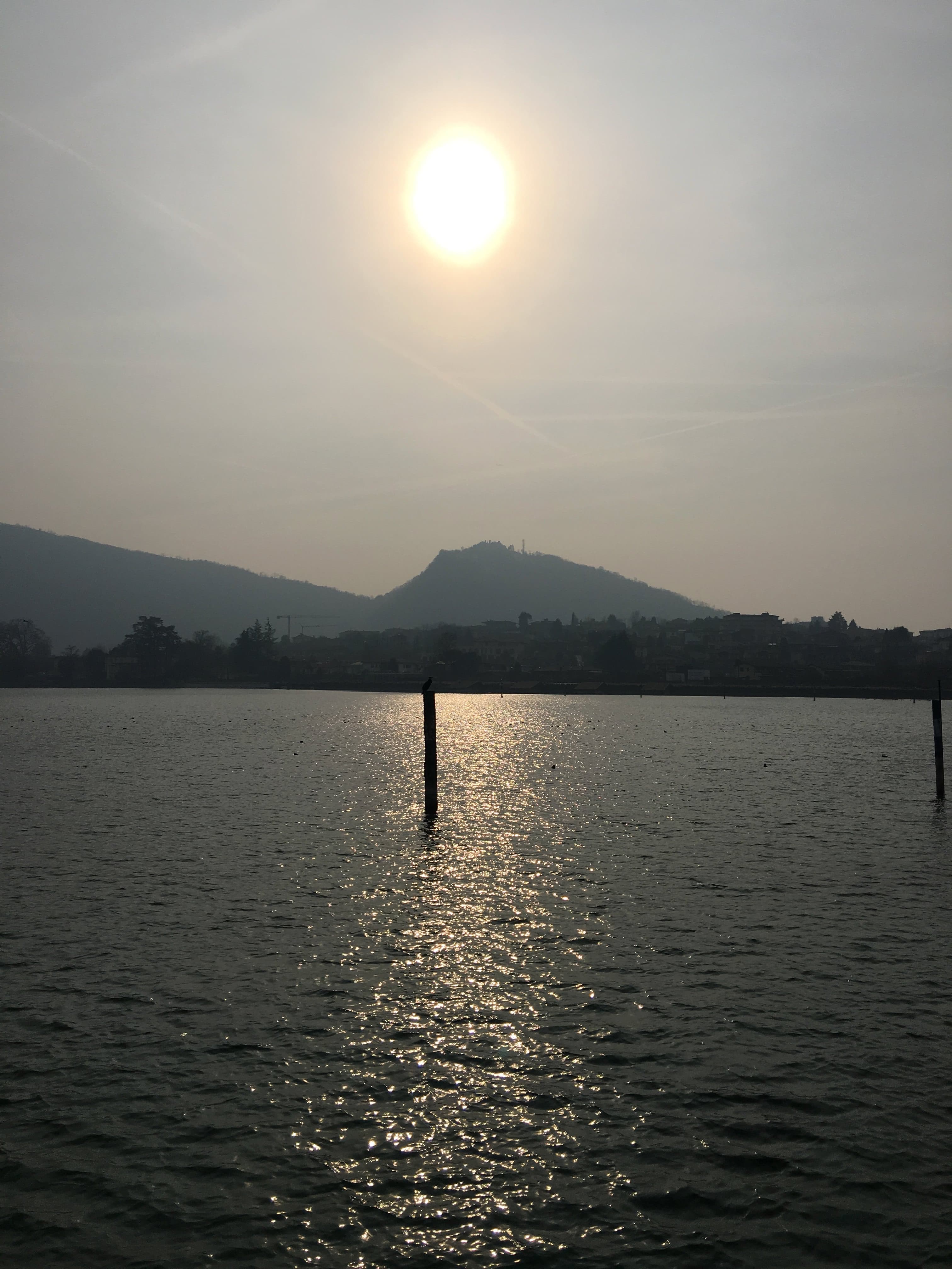 The next day, our only full day, we set out to Lake Iseo in the car. We got to see lots of the countryside, stopping on the way to buy some lunch and more senza glutine products. The surrounding hills were beautiful and the lake itself was just gorgeous. We stopped off for lunch in Sarnico, a sleepy town next to the lake. We drank tea and coffee and played Lost Cities in a Phileas Fogg themed cafe.