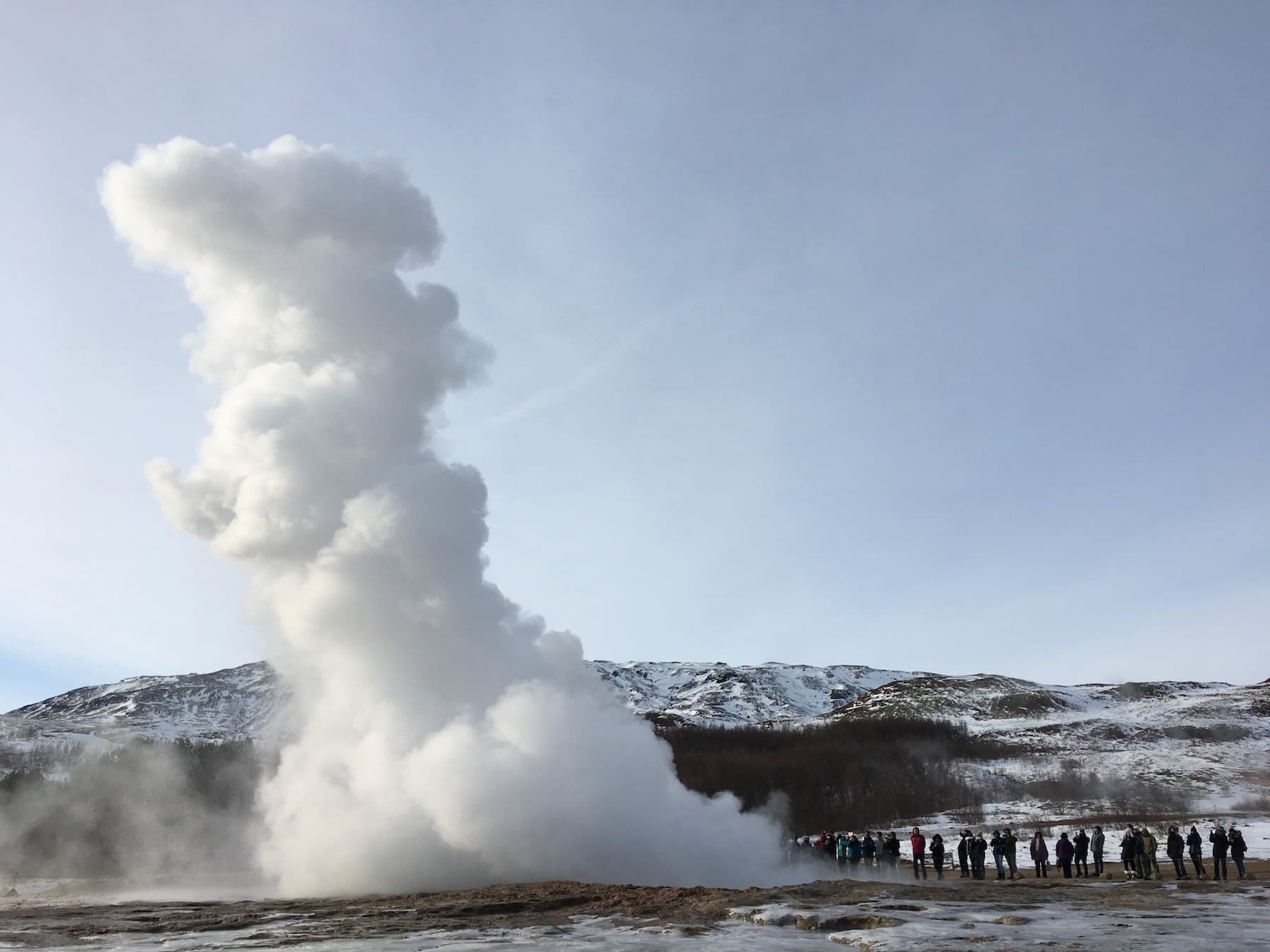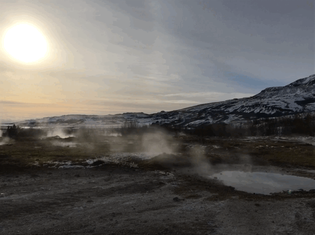 By the time we returned to the viewing platform all the day trippers had moved on and we had the sumptuous views pretty much to ourselves. We took some more photos and then set off for our next destination: Geysir. Can you guess what was there?