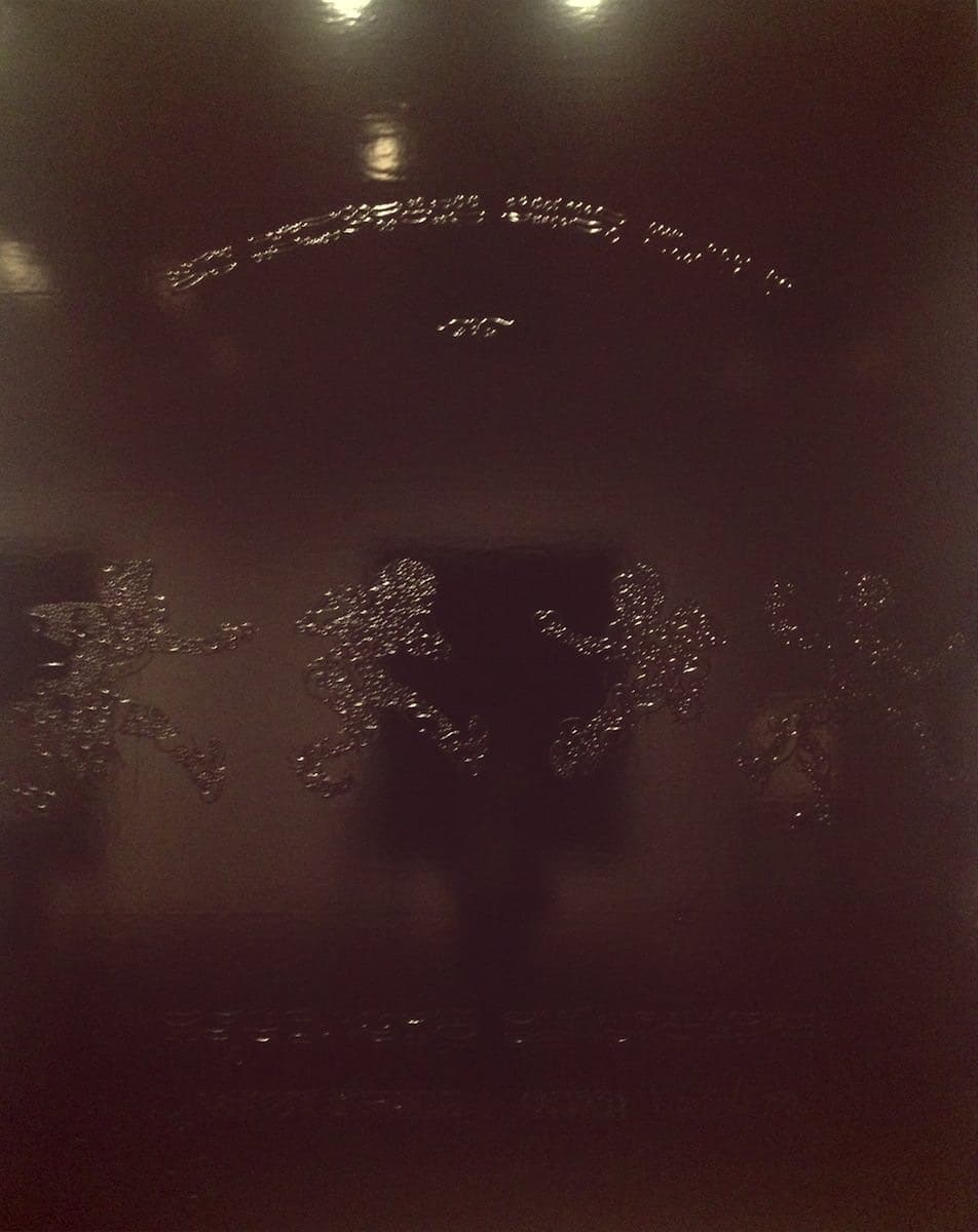I have to be in the right mood for multimedia installations but "Osedax" (2010) was amazing, the perfect blend of a carved wooden box to sit in, the videos, the projections and the music (and the vibrations from the speakers under the wooden benches). It's ostensibly about dead whales that wash ashore to be consumed by scavengers (according to the show guide) but it seems too pretty for that. I tried to film what it was like inside but the resulting 15 second snippet didn't do it any justice at all.