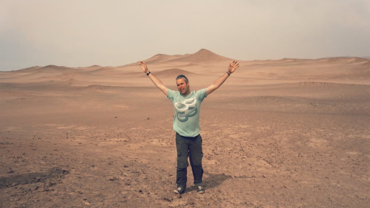 The campsite was at a nice enough hotel but it was somewhat isolated from the rest of Nazca by being along a long (and boy was it long - about a mile or so at least) dirt road. But at least it had a pool. No warm showers, but I was almost used to that by this point. My only issue was now having a tent mate who got drunk and attempted to cuddle me when I got back to the tent! Well, that and needing to go to the toilet all night (and they were miles away!) - but at least that got me looking up at the stars when I finally gave in and used a bush instead. It was very dark that far away from the town and as the dogs barked in the night, I gazed up at the Milky Way for only about the fourth or fifth time in my life. Earlier in the evening we’d been to a planetarium and had the [Nazca lines" image_path=") explained to us. It was very relaxing, though the constantly following a laser pointer for an hour made me feel a bit like a cat.