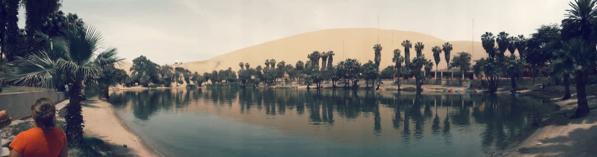 The next morning I felt a bit unwell as we made our way to Huacachina, which was the last surviving oasis in South America (though just like all the others it is no longer an oasis and now has water piped in from elsewhere) and is basically a gringo trap designed to get tourists to go dune buggy riding. I decided to explore the town instead. It was warm, sunny, and looked very pretty, but beyond that there wasn’t much to see. I had an Inka Kola at a café, chatted to some newcomers (Maz and Luke), put a snapshot of the main pond/lake up on Facebook, and that was pretty much it apart from also managing to find my something that I would never wear for the party - pretty much the ugliest pair of swimmers I’d ever seen for about £2.