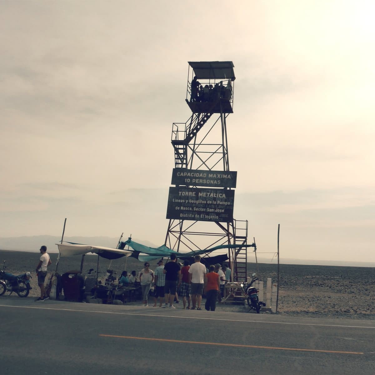 When the dune buggies returned, we headed on to Nazca. En route we stopped off at a viewing platform (the nicely named “Torre Metallica” - presumably you can also “Ride The Lightning” and maybe there’s a door on the back marked “Enter Sandman”?) on the Trans-American Highway where you can pay a couple of Soles to see two of the famous Nazca lines from about 100 feet off the ground. Being earmarked to fly over them the next day I decided not to bother. I did manage to grab a postcard featuring all the lines though as I thought it might be useful for future reference. I sent it to my parents for safe-keeping!