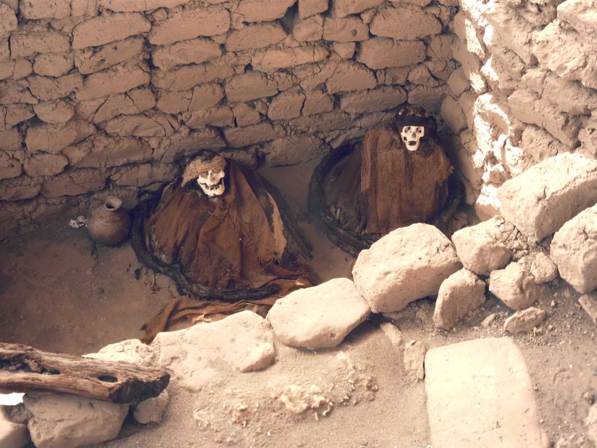 On the way to Puerto Inca we stopped off at the [Chauchilla cemetery" image_path="http://en.wikipedia.org/wiki/Chauchilla_Cemetery) where mummies were discovered in 1920. Apart from the obvious macabre intrigue of these skeletons sat in pits dressed as they had been long ago (since the 9th century) preserved by sand and heat, there was little context for what was there and so it was just a strange walk in the heat with no real information gained. I learned more about the mummies from wikipedia while writing this post!